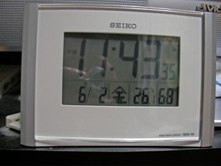 温度計を買い替えても、あまり変らず 2006.06.02 測定に誤差が生じる寒暖計を捨てて、新しいのを買ってきた。 気温と湿度が表示できる電波時計。 電波時計も安くなったねぇ。セイコー製のこれでも3500円也。 で。只今の室温26度、湿度68%。 やっぱり蒸し暑いなぁ。